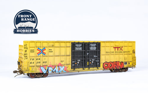 WalthersProto 89' Thrall Enclosed Tri-Level Auto Carrier - Ready to Run -- TTX ETTX Flat #331154/710851 (yellow, silver, black) (Weathered)